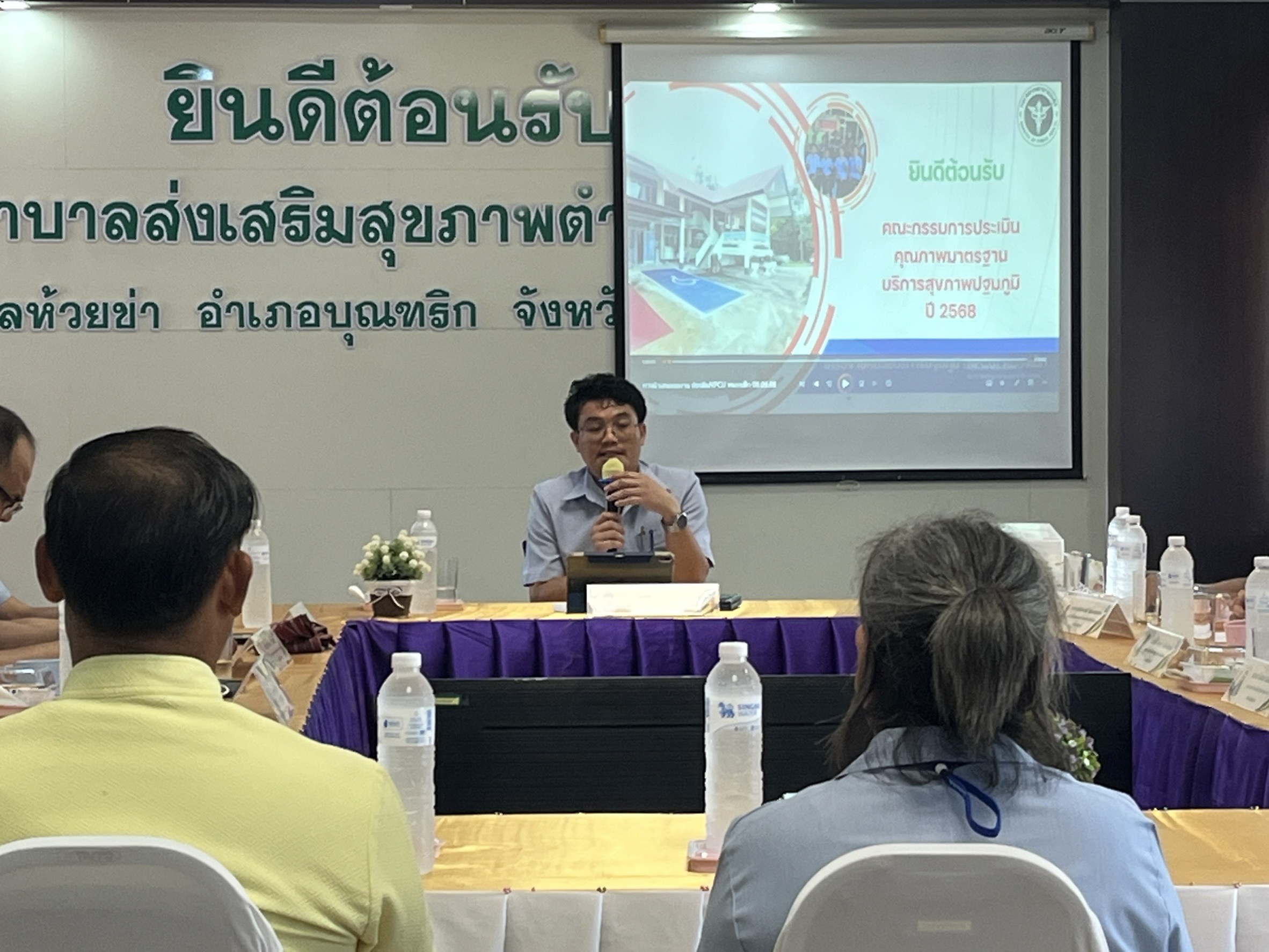 วันจันทร์ที่ 8 กันยายน 2568 นายไชยา หาญสมุทร นายกองค์การบริหารส่วนตำบลห้วยข่า พร้อมเจ้าหน้าที่องค์การบริหารนส่วนตำบลห้วยข่า ร่วมการประเมินหน่วยบริการปฐมภูมิ PCU (Primary Care Unit)