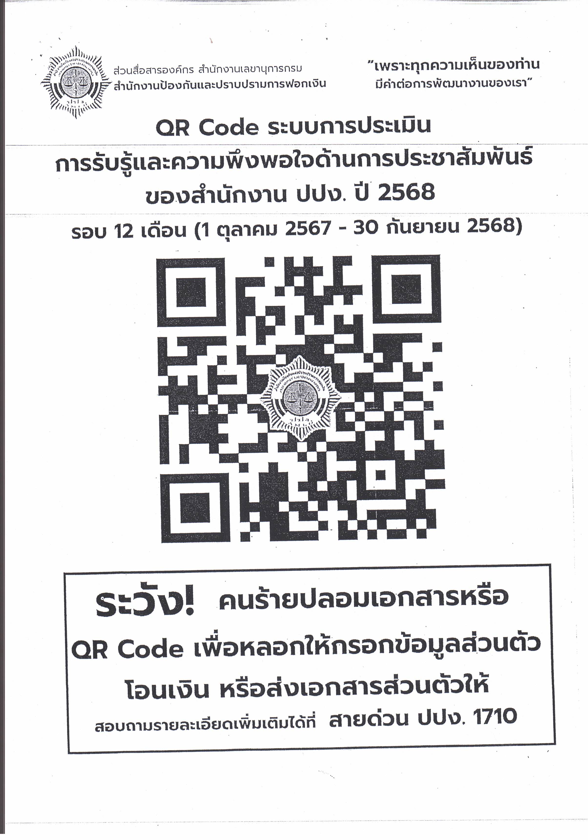 สำนักงาน ปปง. ขอเชิญประชาชนทั่วไปร่วมทำแบบประเมินความพึงพอใจด้านการประชาสัมพันธ์ของสำนักงาน ปปง. รอบ 12 เดือน