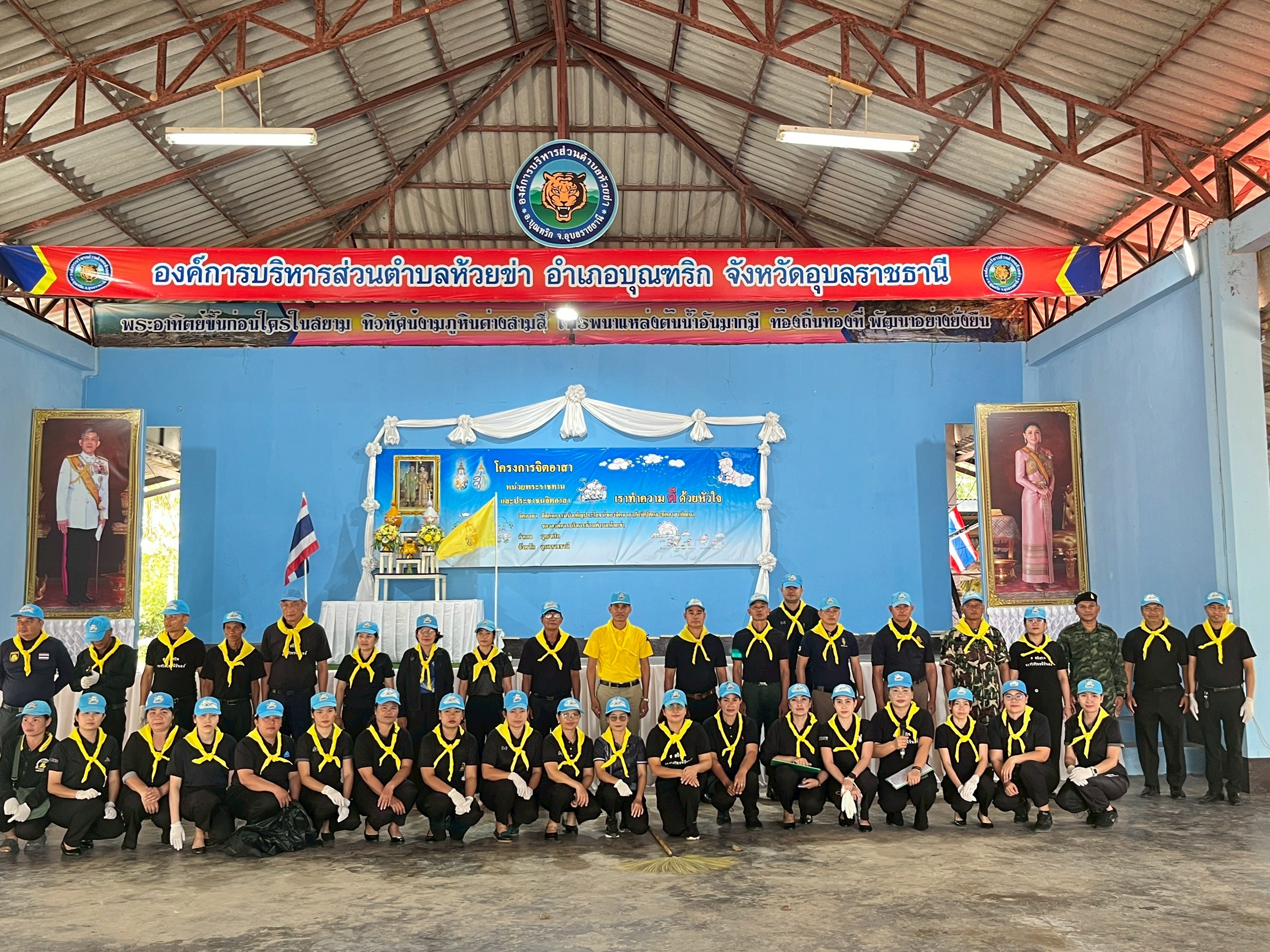 วันที่ 19 พฤศจิกายน 2568 องค์การบริหารส่วนตำบลห้วยข่า ดำเนินโครงการจัดกิจกรรมจิตอาสาบำเพ็ญประโยชน์ของจิตอาสาภัยพิบัติและจิตอาสาพัฒนาขององค์การบริหารส่วนตำบลห้วยข่า “เราทำความ ดี ด้วยหัวใจ” ครั้งที่ 5 ประจำปีงบประมาณ 2568 โดยมี นายอมร พรมสอน อำเภอบุณฑริก ในฐานะผู้อำนวยการศูนย์อำนวยการจิตอาสาพระราชทานอำเภอบุณฑริก เป็นประท่านในพิธี พร้อมนายไชยา หาญสมุทร นายกองค์การบริหารส่วนตำบลห้วยข่า ร่วมกับคณะผู้บริหาร พนักงานส่วนตำบล และพนักงานจ้างขององค์การบริหารส่วนตำบลห้วยข่า สถานีตำรวจภูธรตำบลห้วยข่า ชุดปฏิบัติการกิจการพลเรือน กองกำลังสุรนารี ที่ 216 หมวดตำรวจตระเวนชายแดนที่ 2253 อุทยานแห่งชาติภูจองนายอย หน่วยป้องกันและรักษาป่าที่ อบ 8 โรงพยาบาลส่งเสริมสุขภาพตำบลห้วยข่า โรงพยาบาลส่งเสริมสุขภาพตำบลหนองเม็ก โรงพยาบาลส่งเสริมสุขภาพตำบลบ้านบก โรงเรียนในพื้นที่ตำบลห้วยข่าทุกแห่ง ผู้ใหญ่บ้านในพื้นที่ตำบลห้วยข่า อปพร. และกลุ่มประชาชนจิตอาสาพระราชทานตำบลห้วยข่า จำนวน 155 คน ได้พร้อมใจกันร่วมกิจกรรมโครงการจัดกิจกรรมจิตอาสาบำเพ็ญประโยชน์ของจิตอาสาภัยพิบัติและจิตอาสาพัฒนาขององค์การบริหารส่วนตำบลห้วยข่า “เราทำความ ดี ด้วยหัวใจ” ประจำปีงบประมาณ 2568 ด้วยความสมัครสมานสามัคคี จัดกิจกรรมจิตอาสาพัฒนาปรับปรุงภูมิทัศน์