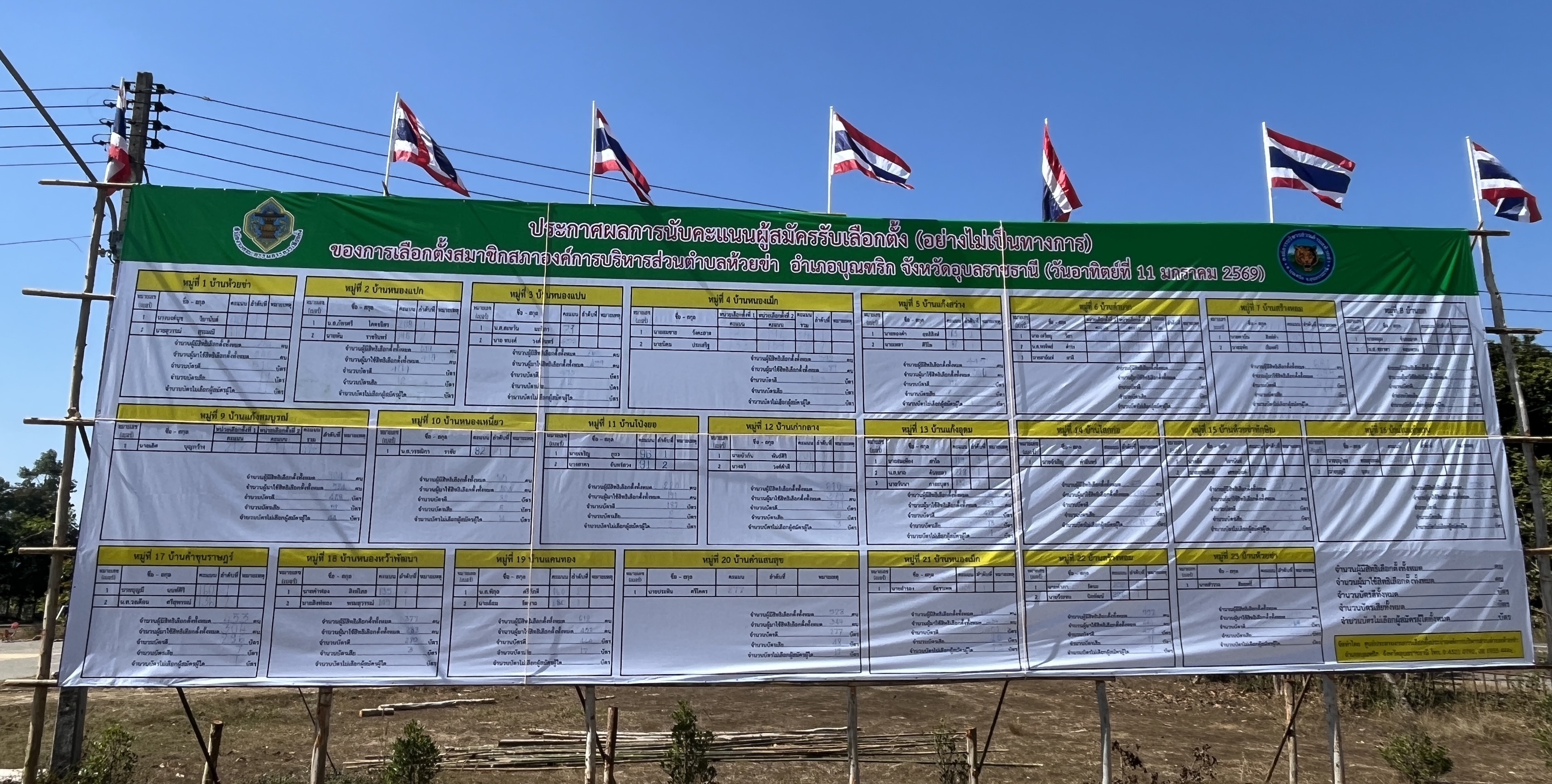 ประกาศผลการนับคะแนนผู้สมัครรับเลือกตั้ง (อย่างไม่เป็นทางการ) ของการเลือกตั้งนายกองค์การบริหารส่วนตำบลห้วยข่า อำเภอบุณฑริก จังหวัดอุบลราชธานี (วันอาทิตย์ที่ 11 มกราคม 2569) ประกาศผลการนับคะแนนผู้สมัครรับเลือกตั้ง (อย่างไม่เป็นทางการ)