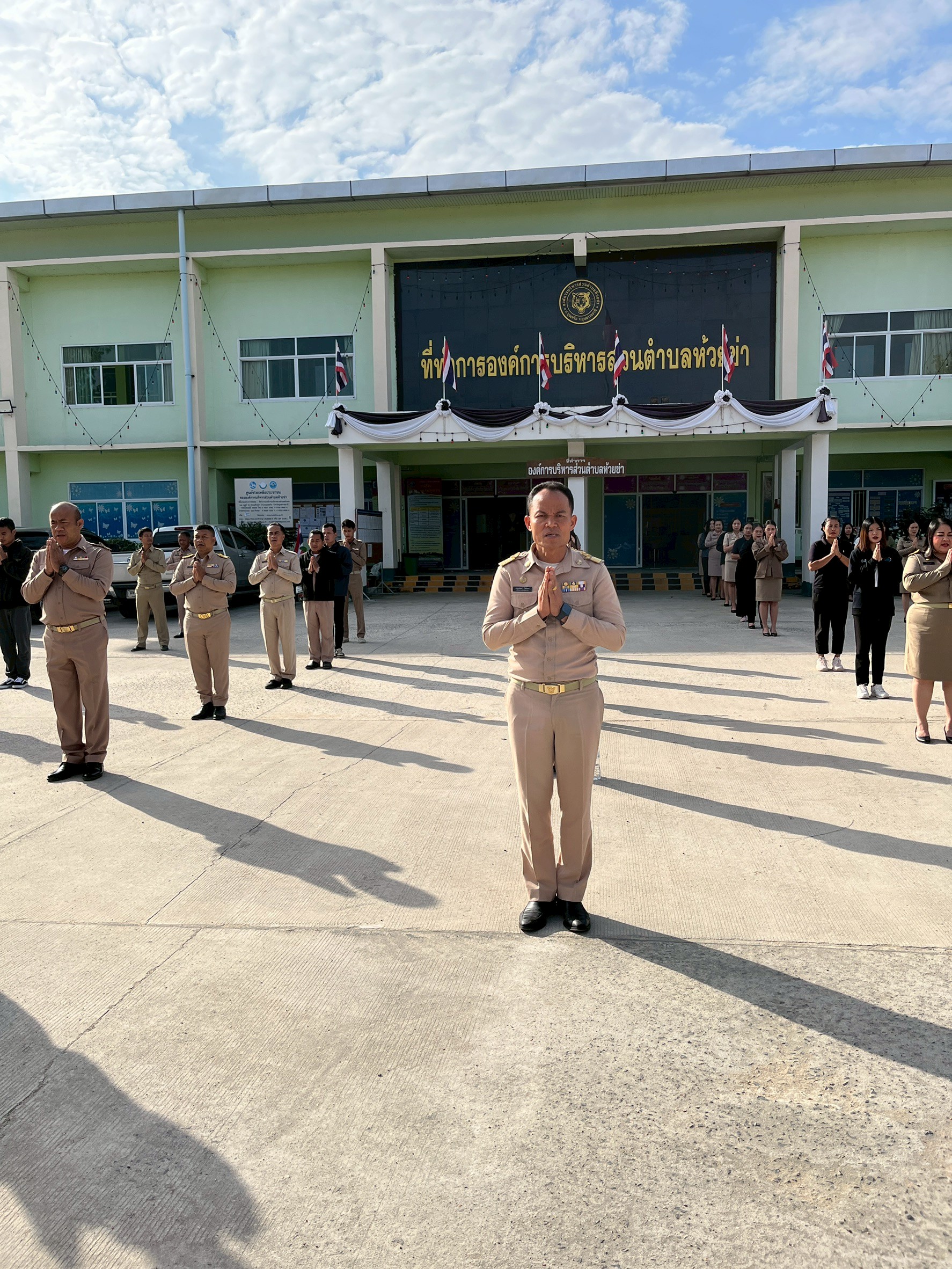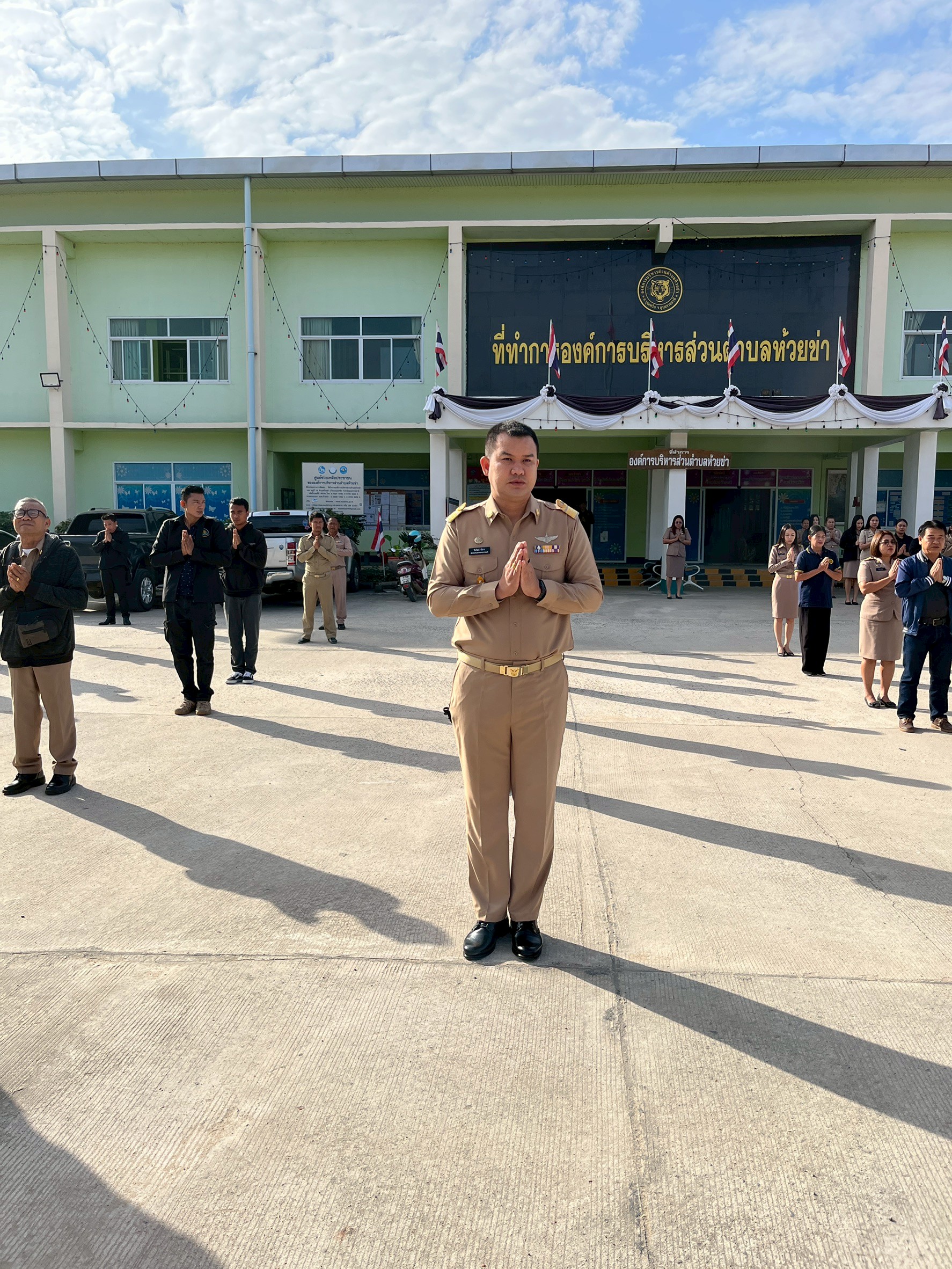 วันจันทร์ที่ 2 กุมภาพันธ์ 2569 นายปุญญพัฒน์ โชตินอก ปลัดองค์การบริหารส่วนตำบล ปฏิบัติหน้าที่ นายกองค์การบริหารส่วนตำบลห้วยข่า พนักงานส่วนตำบลและพนักงานจ้างขององค์การบริหารส่วนตำบลห้วยข่า ร่วมกันเข้าแถวเคารพธงชาติและรับนโยบายในการปฏิบัติงานโดยพร้อม