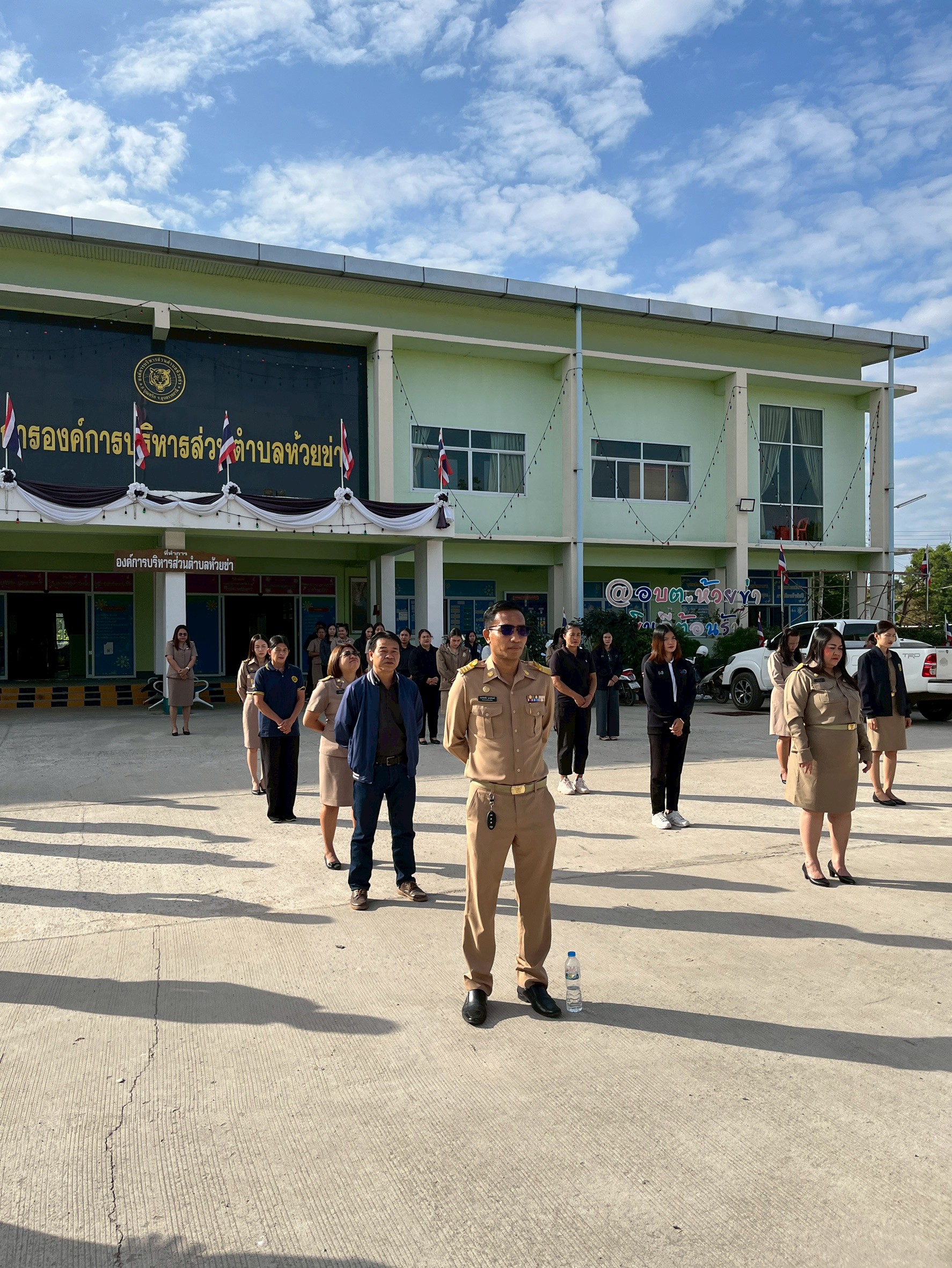 วันจันทร์ที่ 2 กุมภาพันธ์ 2569 นายปุญญพัฒน์ โชตินอก ปลัดองค์การบริหารส่วนตำบล ปฏิบัติหน้าที่ นายกองค์การบริหารส่วนตำบลห้วยข่า พนักงานส่วนตำบลและพนักงานจ้างขององค์การบริหารส่วนตำบลห้วยข่า ร่วมกันเข้าแถวเคารพธงชาติและรับนโยบายในการปฏิบัติงานโดยพร้อมเพรียงกัน