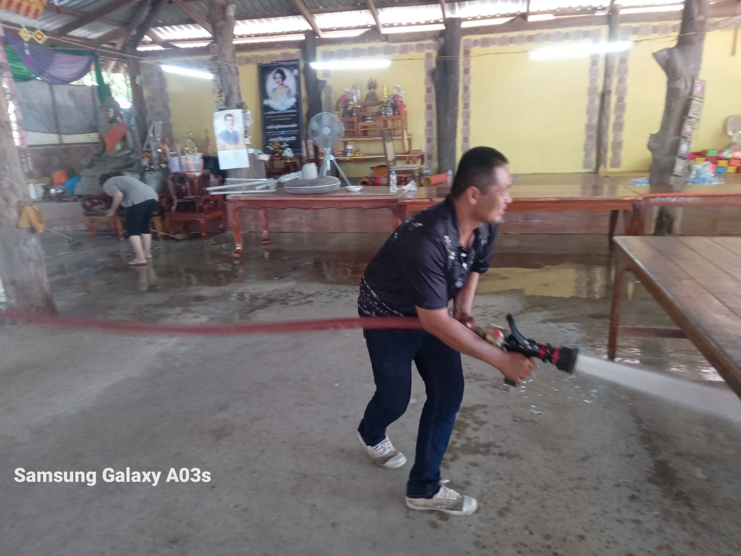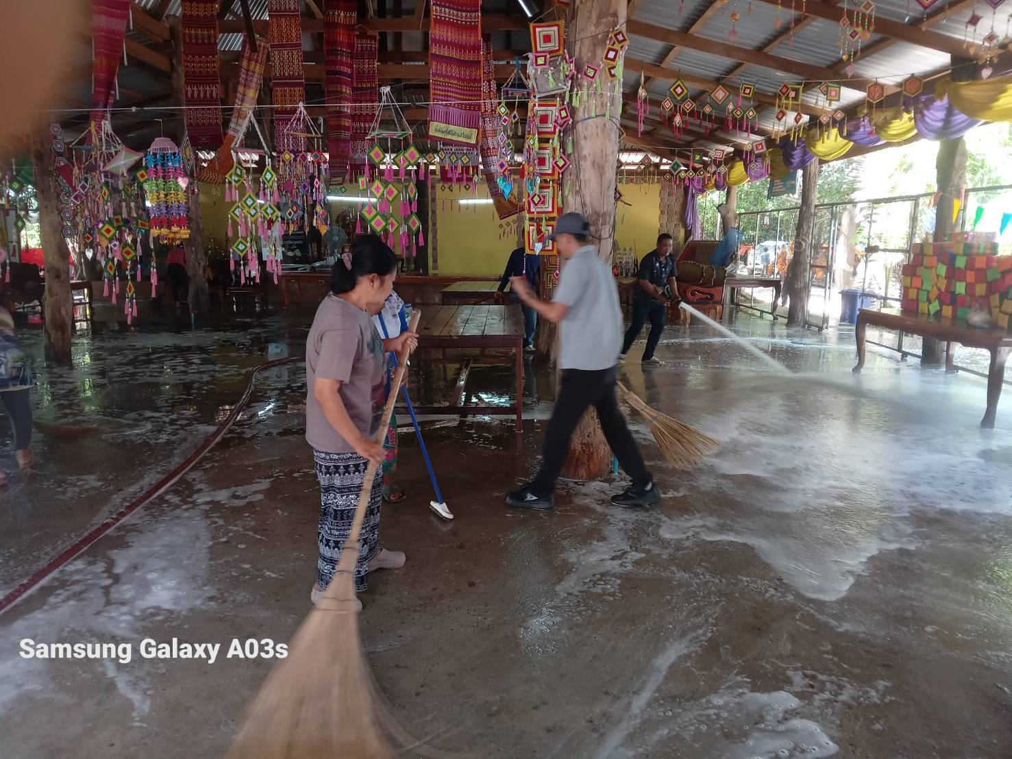 วันอังคารที่ 10 มีนาคม 2569 เจ้าหน้าที่องค์การบริหารส่วนตำบลห้วยข่า นำรถบรรทุกน้ำออกฉีดน้ำล้างศาลาทำความสะอาดเพื่อเตรียมงานฉลองสมณศักดิ์พัดยศหลวงพ่อพระครูอุดมปุญญาภรณ์ เจ้าอาวาสวัดธรรมิกาวาส