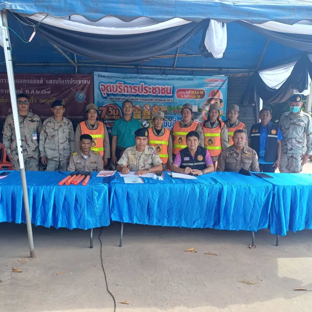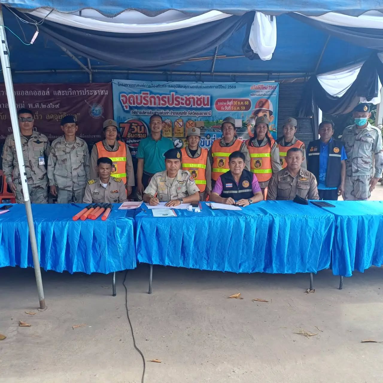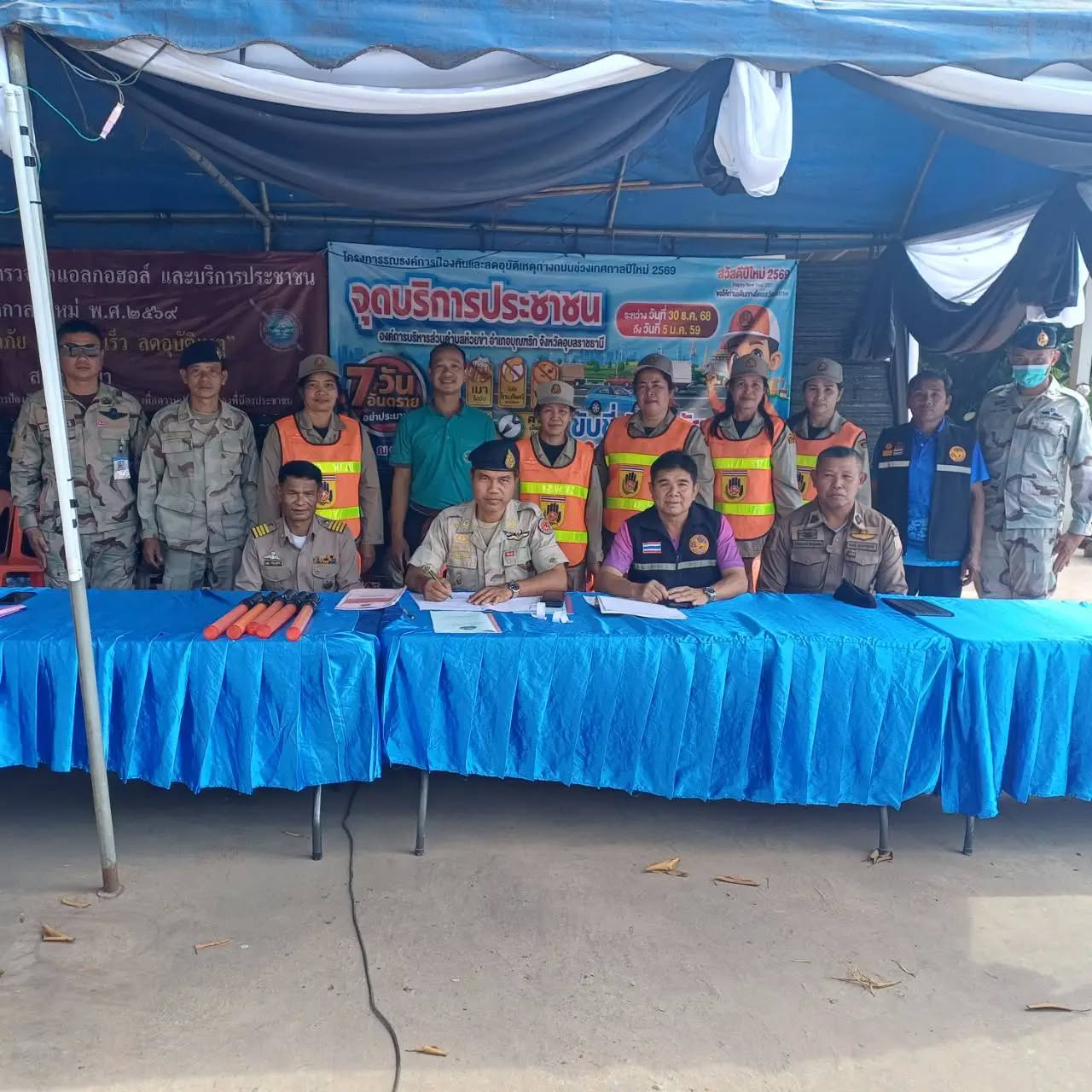 วันพุธที่ 31 ธันวาคม 2568 เจ้าหน้าที่องค์การบริหารส่วนตำบลห้วยข่า ออกปฏิบัติหน้าที่ตรวจเยี่ยมศูนย์บริการประชาชน เพื่อเป็นขวัญและกำลังใจให้กับผู้ปฏิบัติหน้าที่ ตามโครงการรณรงค์การป้องกันและลดอุบัติเหตุทางถนนช่วงเทศกาลปีใหม่ ระหว่างวันที่ 30 ธันวาคม 2568 - 5 มกราคม 2569 ณ สามแยกห้วยข่า ตำบลห้วยข่า อำเภอบุณฑริก จังหวัดอุบลราชธานี