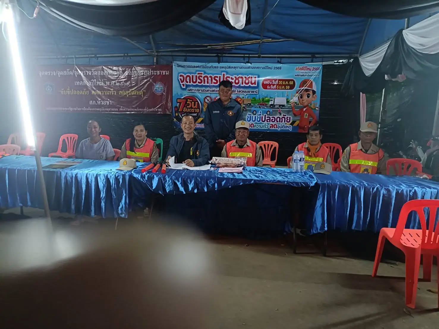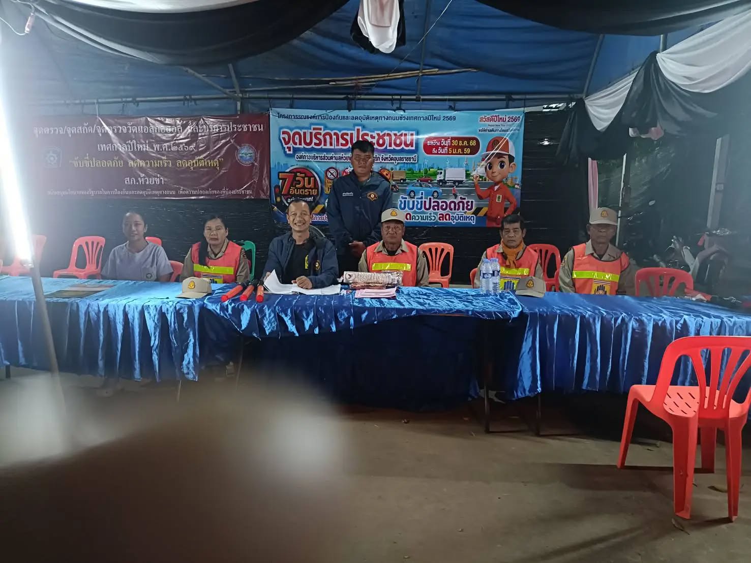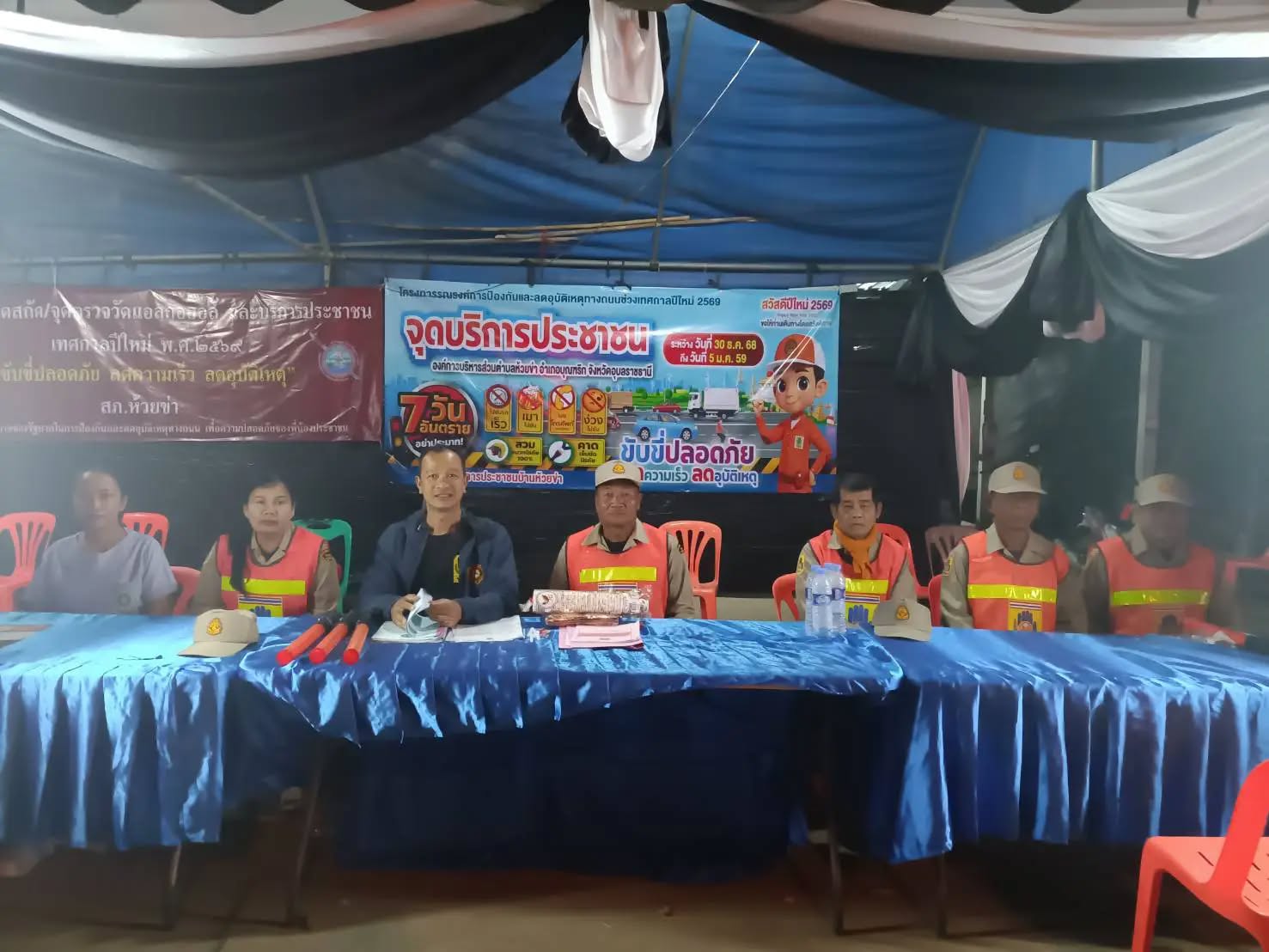 วันศุกร์ที่ 2 มกราคม 2569 เจ้าหน้าที่องค์การบริหารส่วนตำบลห้วยข่า ออกปฏิบัติหน้าที่ตรวจเยี่ยมศูนย์บริการประชาชน เพื่อเป็นขวัญและกำลังใจให้กับผู้ปฏิบัติหน้าที่ ตามโครงการรณรงค์การป้องกันและลดอุบัติเหตุทางถนนช่วงเทศกาลปีใหม่ ระหว่างวันที่ 30 ธันวาคม 2568 - 5 มกราคม 2569 ณ สามแยกห้วยข่า ตำบลห้วยข่า อำเภอบุณฑริก จังหวัดอุบลราชธานี