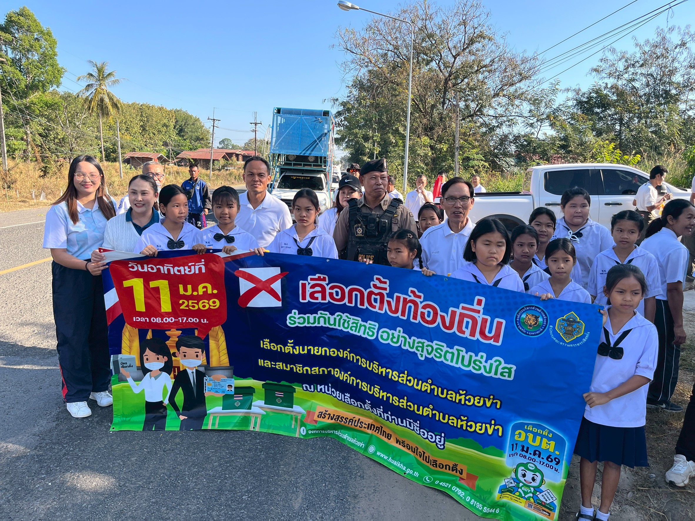 วันอังคารที่ 6 มกราคม 2569 นายปุญญพัฒน์ โชตินอก ผู้อำนวยการการเลือกตั้งประจำองค์การบริหารส่วนตำบลห้วยข่า พร้อมด้วยนายบุญมี จรทะผา ประธานกรรมการการเลือกตั้งประจำองค์การบริหารส่วนตำบลห้วยข่า และนายวิชัย ชำนาญเวช กรรมการการเลือกตั้งประจำองค์การบริหารส่วนตำบลห้วยข่า พร้อมคณะครูและนักเรียนโรงเรียนบ้านห้วยข่า, คณะครูและนักเรียนโรงเรียนห้วยข่าพิทยาคม และพนักงานส่วนตำบลและพนักงานจ้างขององค์การบริหารส่วนตำบลห้วยข่า ร่วมกิจกรรมรณรงค์การไปใช้สิทธิ์เลือกตั้งสมาชิกสภาองค์การบริหารส่วนตำบลห้วยข่าและนายกองค์การบริหารส่วนตำบลห้วยข่า (Big Day) ในวันอาทิตย์ที่ 11 มกราคม 2569 เวลา 8.00 -17.00 น. ขอเชิญชวนพี่น้องชาวตำบลห้วยข่าทุกท่านอย่าลืมไปใช้สิทธิในหน่วยเลือกตั้งที่ท่านมีชื่ออยู่ เพื่อส่งเสริมการออกไปใช้สิทธิ์เลือกตั้งของประชาชนในพื้นที่ตำบลห้วยข่า