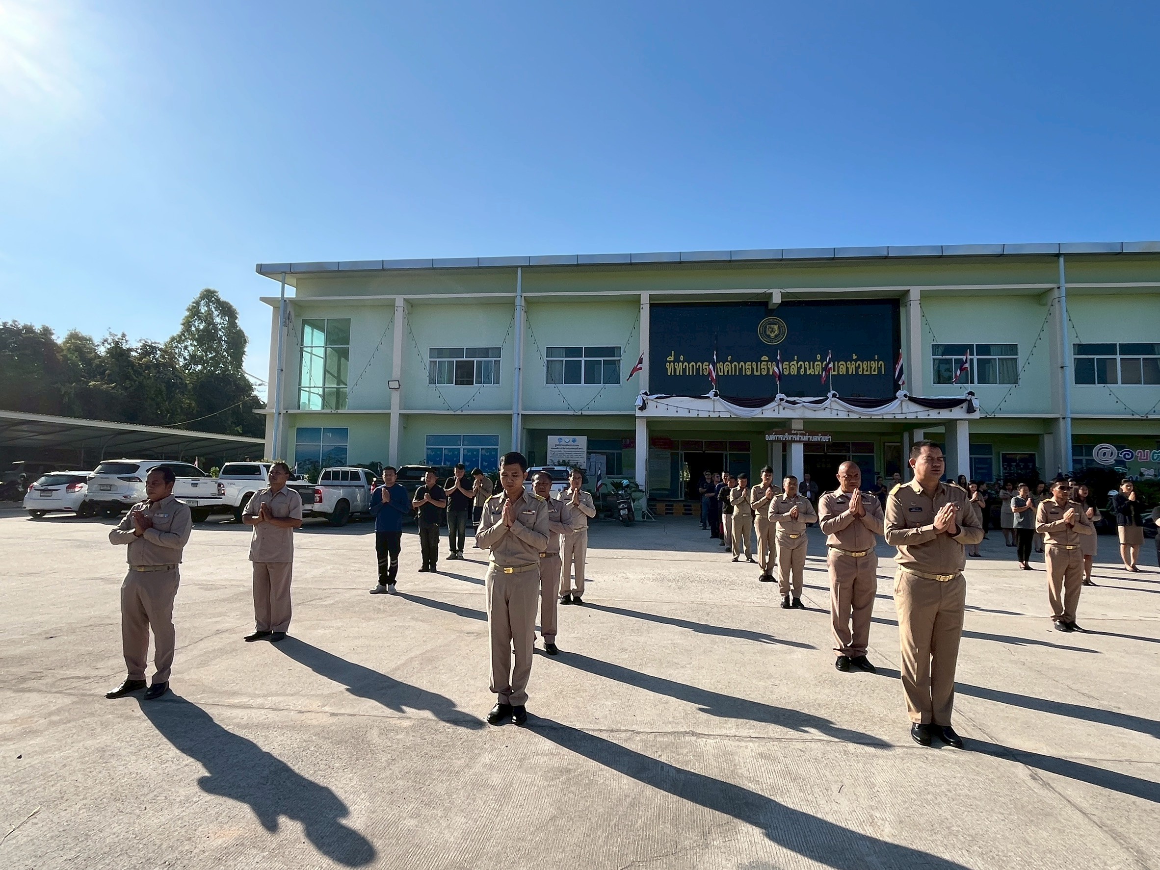 วันจันทร์ที่ 9 กุมภาพันธ์ 2569 นายปุญญพัฒน์ โชตินอก ปลัดองค์การบริหารส่วนตำบล ปฏิบัติหน้าที่ นายกองค์การบริหารส่วนตำบลห้วยข่า พนักงานส่วนตำบลและพนักงานจ้างขององค์การบริหารส่วนตำบลห้วยข่า ร่วมกันเข้าแถวเคารพธงชาติและรับนโยบายในการปฏิบัติงานโดยพร้อมเพรียงกัน