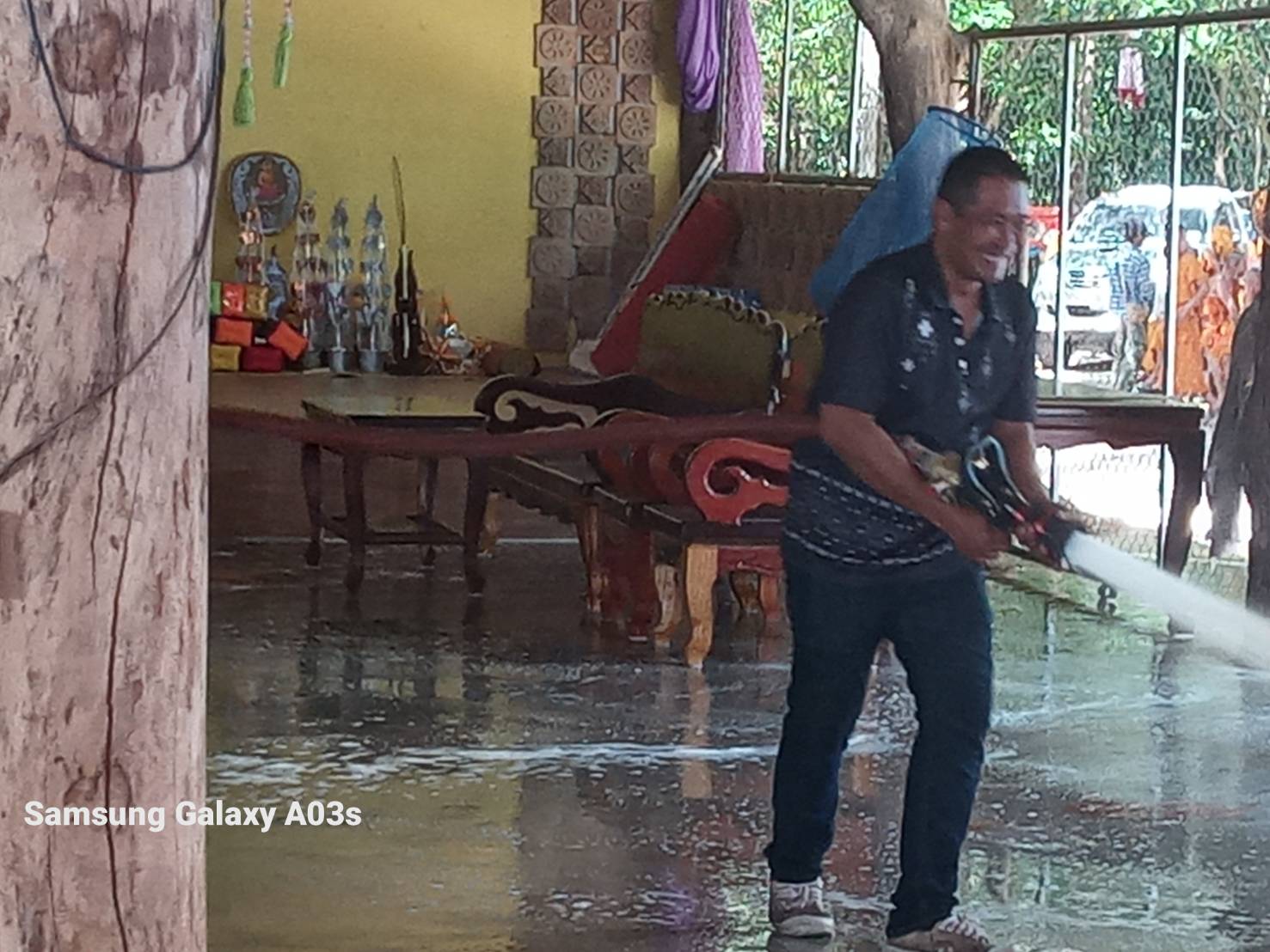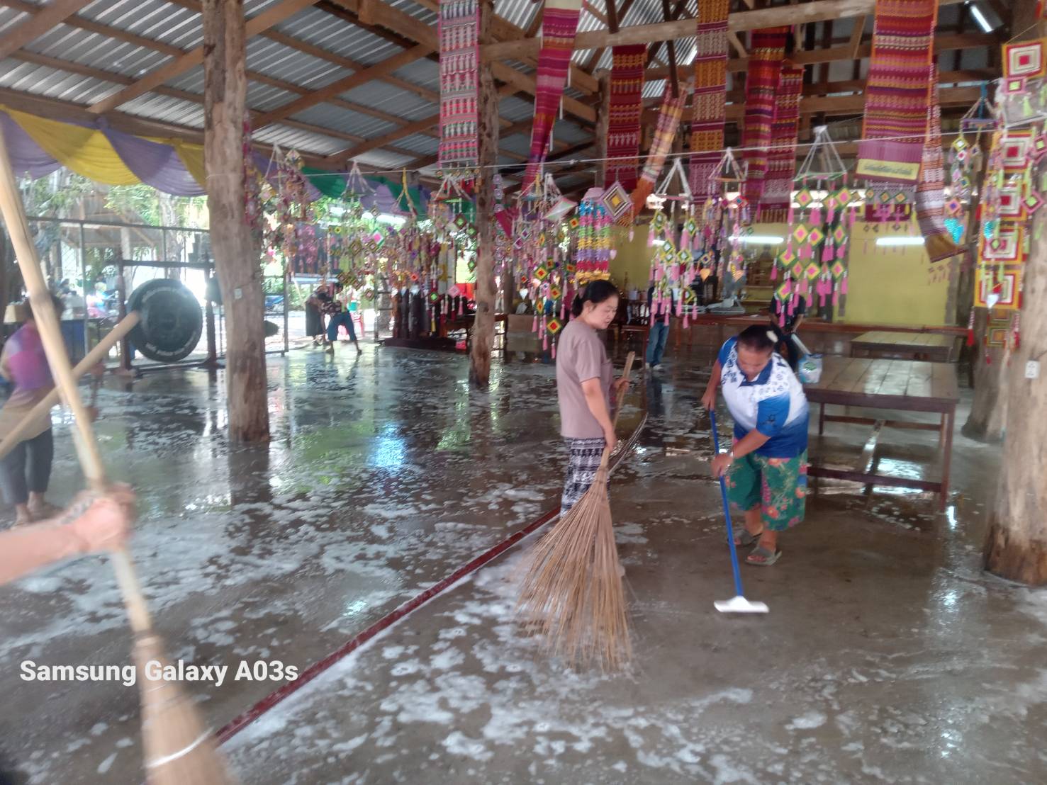 วันอังคารที่ 10 มีนาคม 2569 เจ้าหน้าที่องค์การบริหารส่วนตำบลห้วยข่า นำรถบรรทุกน้ำออกฉีดน้ำล้างศาลาทำความสะอาดเพื่อเตรียมงานฉลองสมณศักดิ์พัดยศหลวงพ่อพระครูอุดมปุญญาภรณ์ เจ้าอาวาสวัดธรรมิกาวาส