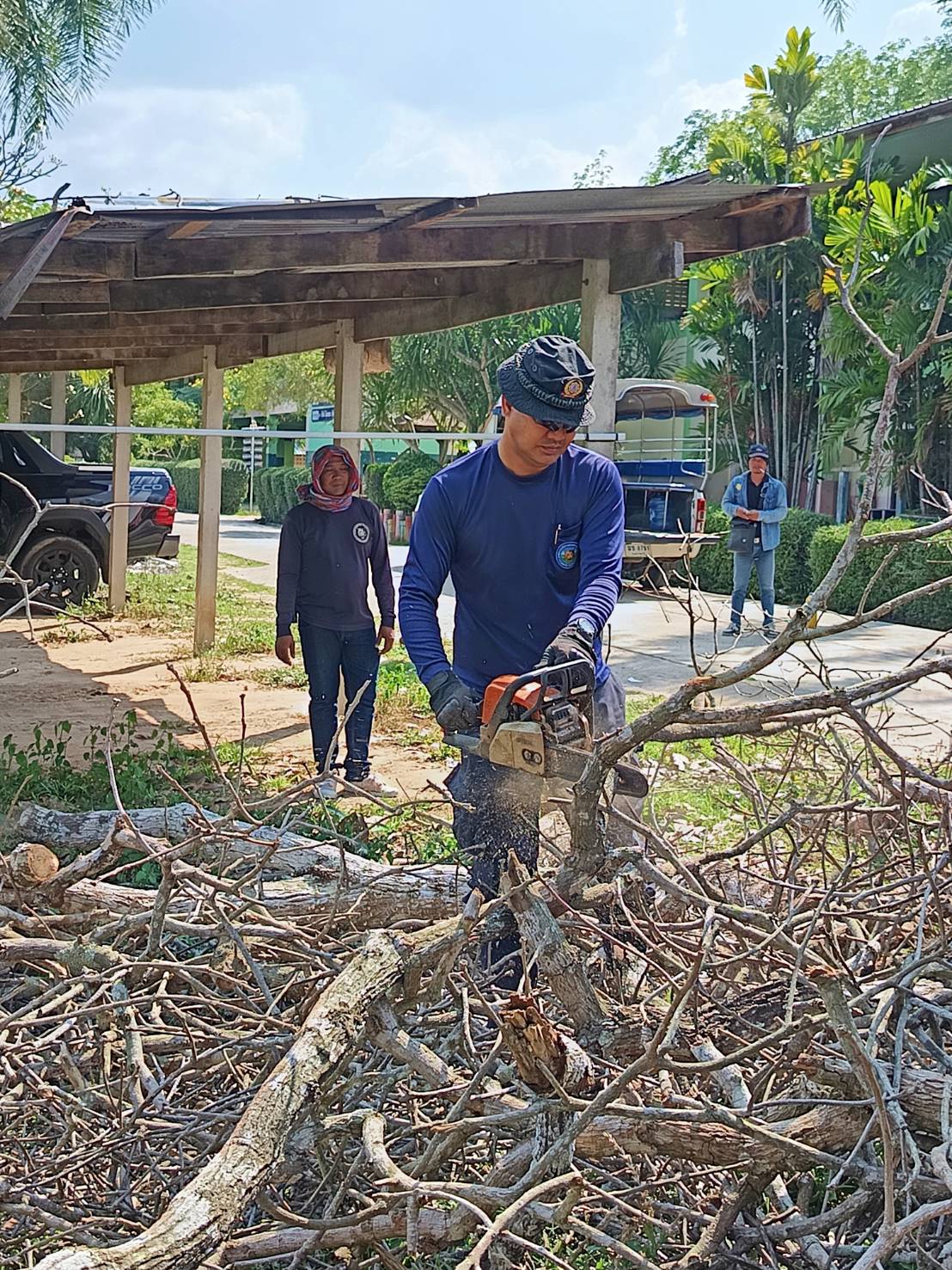 วันอังคารที่ 17 มีนาคม 2569 สิบเอกปิยวัฒน์ วริสาร นักป้องกันและบรรเทาสาธารณภัยชำนาญการ พร้อมเจ้าหน้าที่องค์การบริหารส่วนตำบลห้วยข่า ออกปฏิบัติหน้าที่ตัดต้นไม้/กิ่งไม้เพื่อปรับปรุงภูมิทัศน์และเพื่อความปลอดภัยของคณะครูและนักเรียนในโรงเรียน