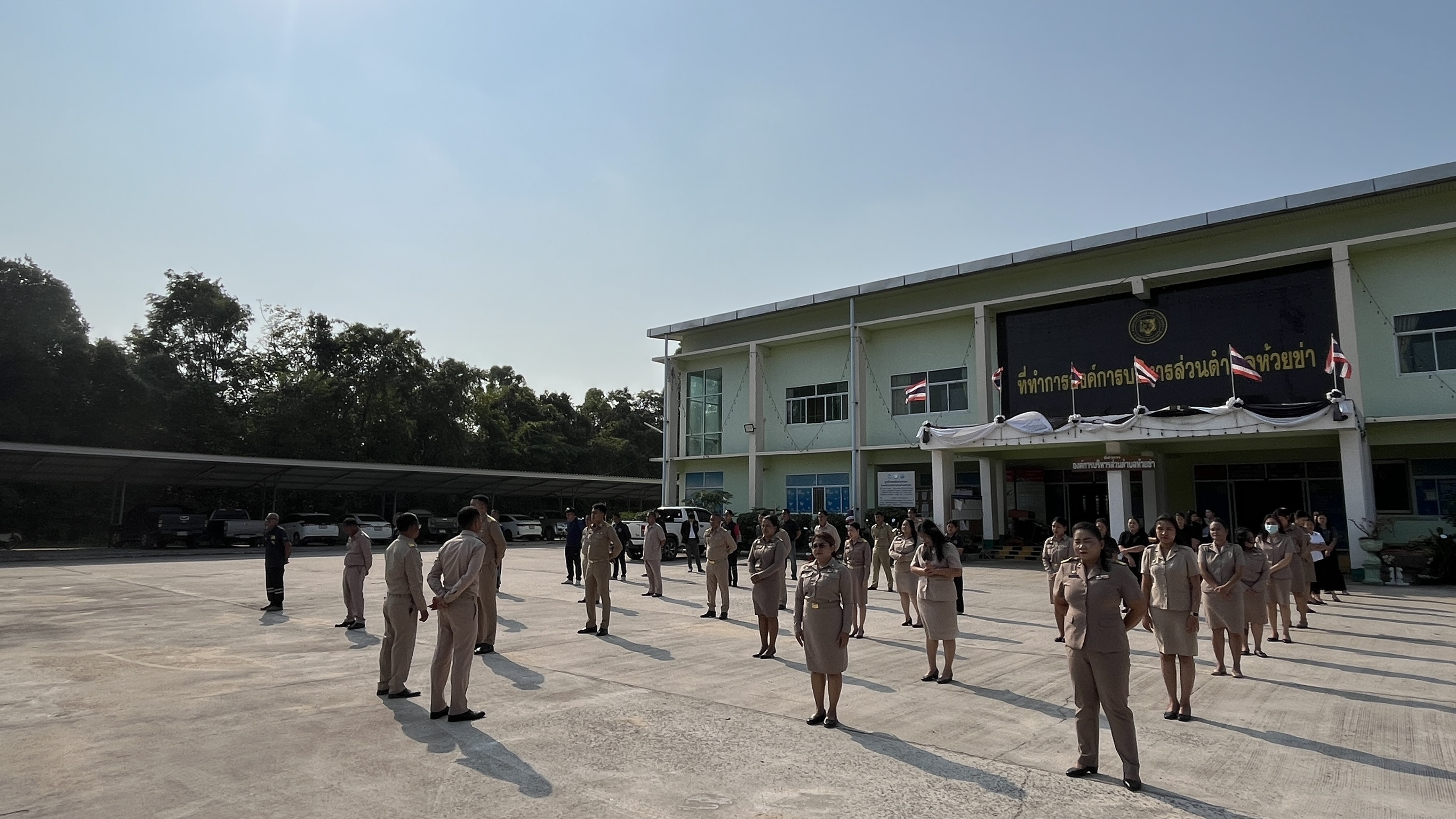 วันจันทร์ที่ 23 มีนาคม 2569 นายสมาน ต้นเกษ นายกองค์การบริหารส่วนตำบลห้วยข่า พร้อมคณะผู้บริหารฯ ปลัดองค์การบริหารส่วนตำบลห้วยข่า พนักงานส่วนตำบลและพนักงานจ้างขององค์การบริหารส่วนตำบลห้วยข่า ร่วมกันเข้าแถวเคารพธงชาติและรับนโยบายในการปฏิบัติงานโดยพร้อมเพรียงกัน