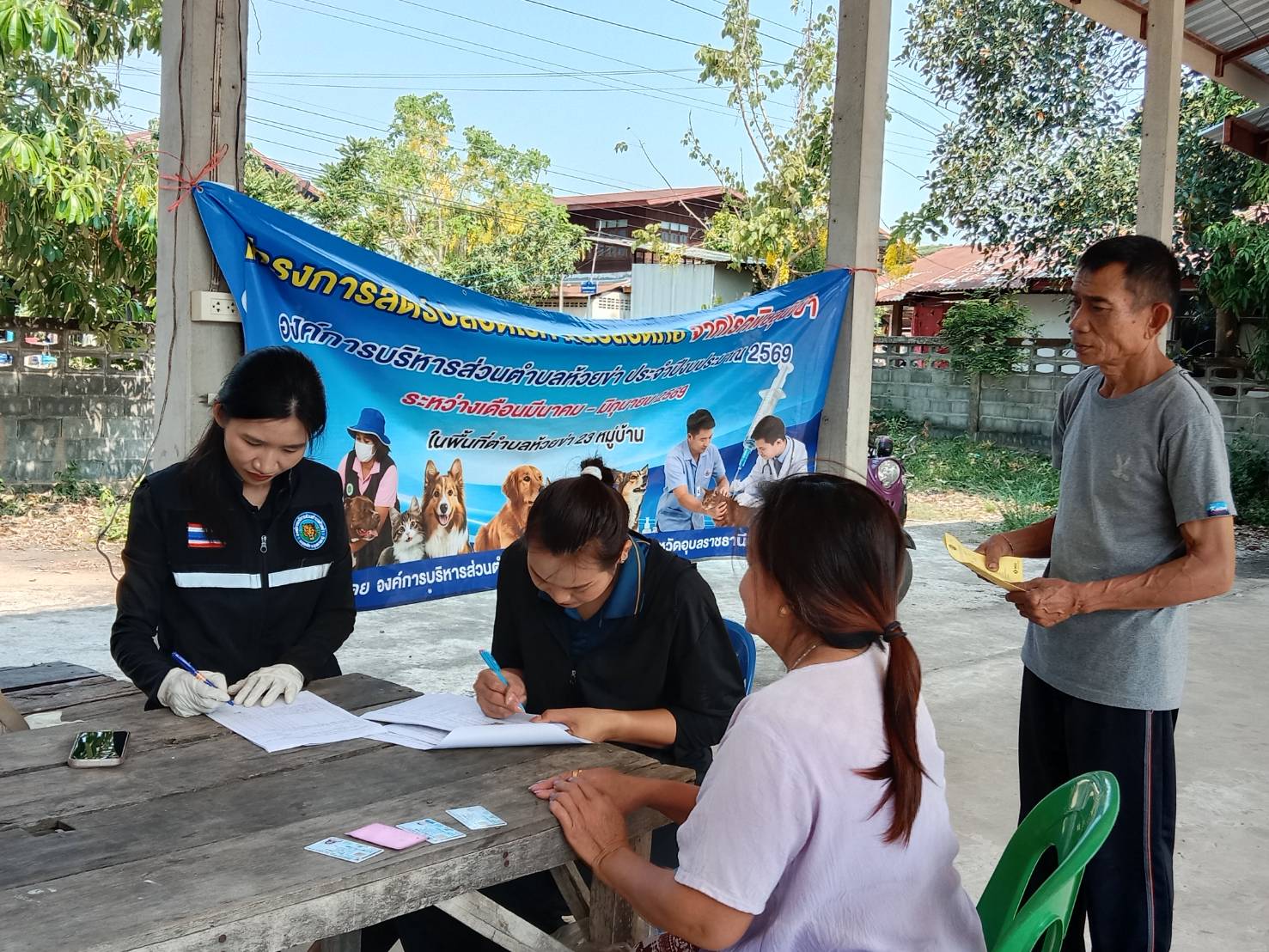วันพฤหัสบดีที่ 26 มีนาคม 2569 นางสาวจริยา ใจแก้ว นักวิชาการสาธารณสุขชำนาญการ และเจ้าหน้าที่องค์การบริหารส่วนตำบลห้วยข่า ออกติดตามงานป้องกันและคควบคุมโรคพิษสุนักบ้า โครงการสัตว์ปลอดโรค คนปลอดภัย จากพิษสุนัขบ้า องค์การบริหารส่วนตำบลห้วยข่า ประจำปีงบประมาณ 2569 ระหว่างเดือน มีนาคม - มิถุนายน 2569 ในพื้นที่ตำบลห้วยข่า ณ ศาลาประชาคมหมู่บ้าน หมู่ที่ 4,6,7,11,20,22
