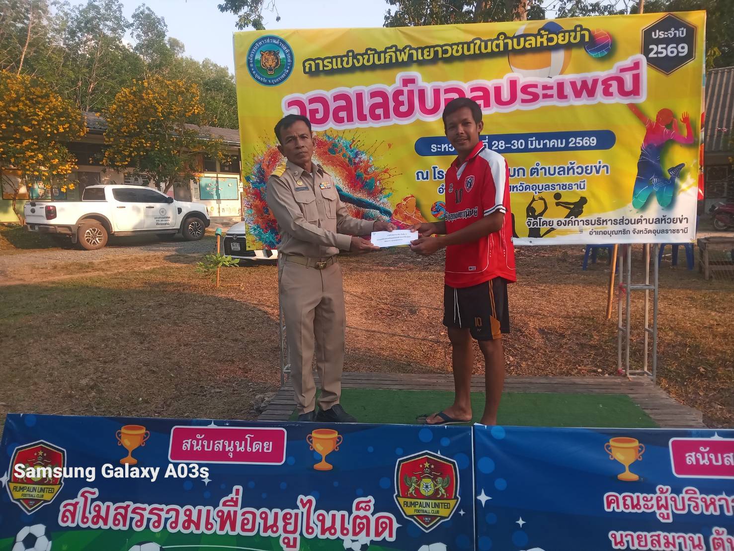 วันจันทร์ที่ 30 มีนาคม 2569 นายสมาน ต้นเกษ นายกองค์การบริหารส่วนตำบลห้วยข่า ร่วมพิธีปิดการแข่งขันกีฬาเยาวชนในตำบลห้วยข่า กีฬาวอลเล่ย์บอลประเพณี ประจำปี 2569 ระหว่าง วันที่ 29-30 มีนาคม 2569 ณ สนามกีฬาโรงเรียนบ้านบก สพป.อบ.5 ตำบลห้วยข่า อำเภอบุณฑริก