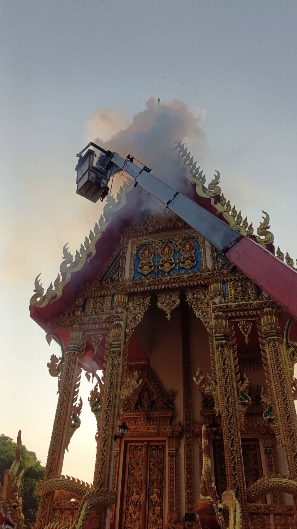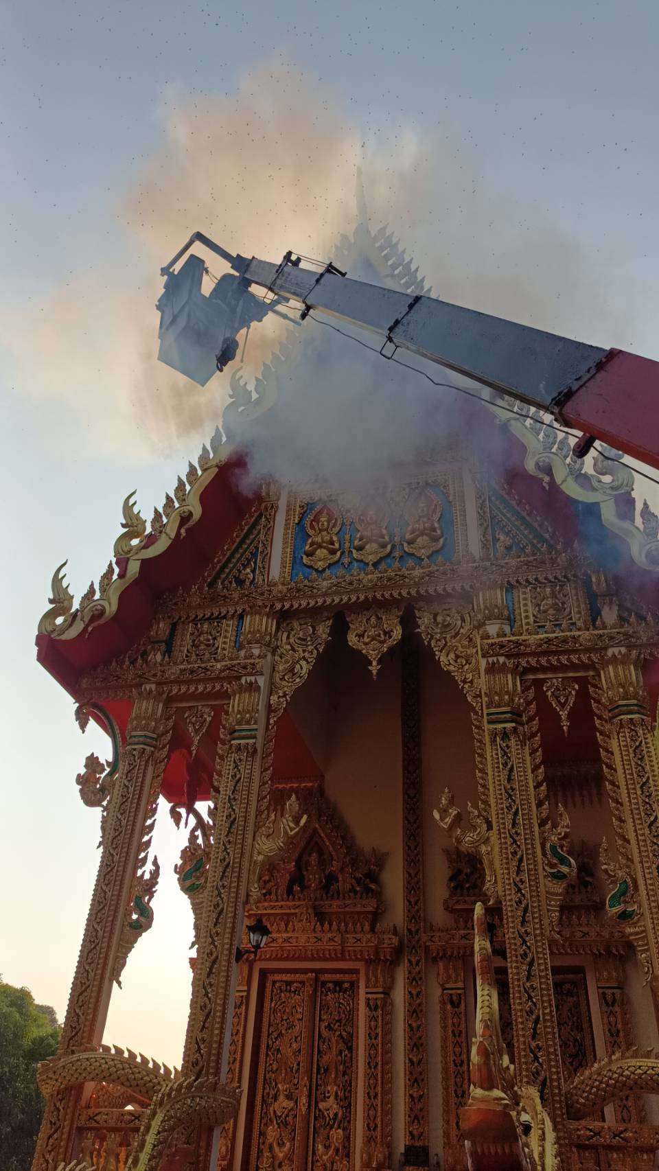 วันจันทร์ที่ 30 มีนาคม 2569 สิบเอกปิยวัฒน์ วริสาร นักป้องกันและบรรเทาสาธารณภัยชำนาญการ พร้อมเจ้าหน้าที่องค์การบริหารส่วนตำบลห้วยข่าออกปฏิบัติหน้าที่ฉีดพ่นและร่มควันเพื่อไล่ผึ่งออกจากโบสถ์ เพื่อป้องกันอันตรายให้กับประชาชนในพื้นที่ตำบลห้วยข่า วัดบ้านบก